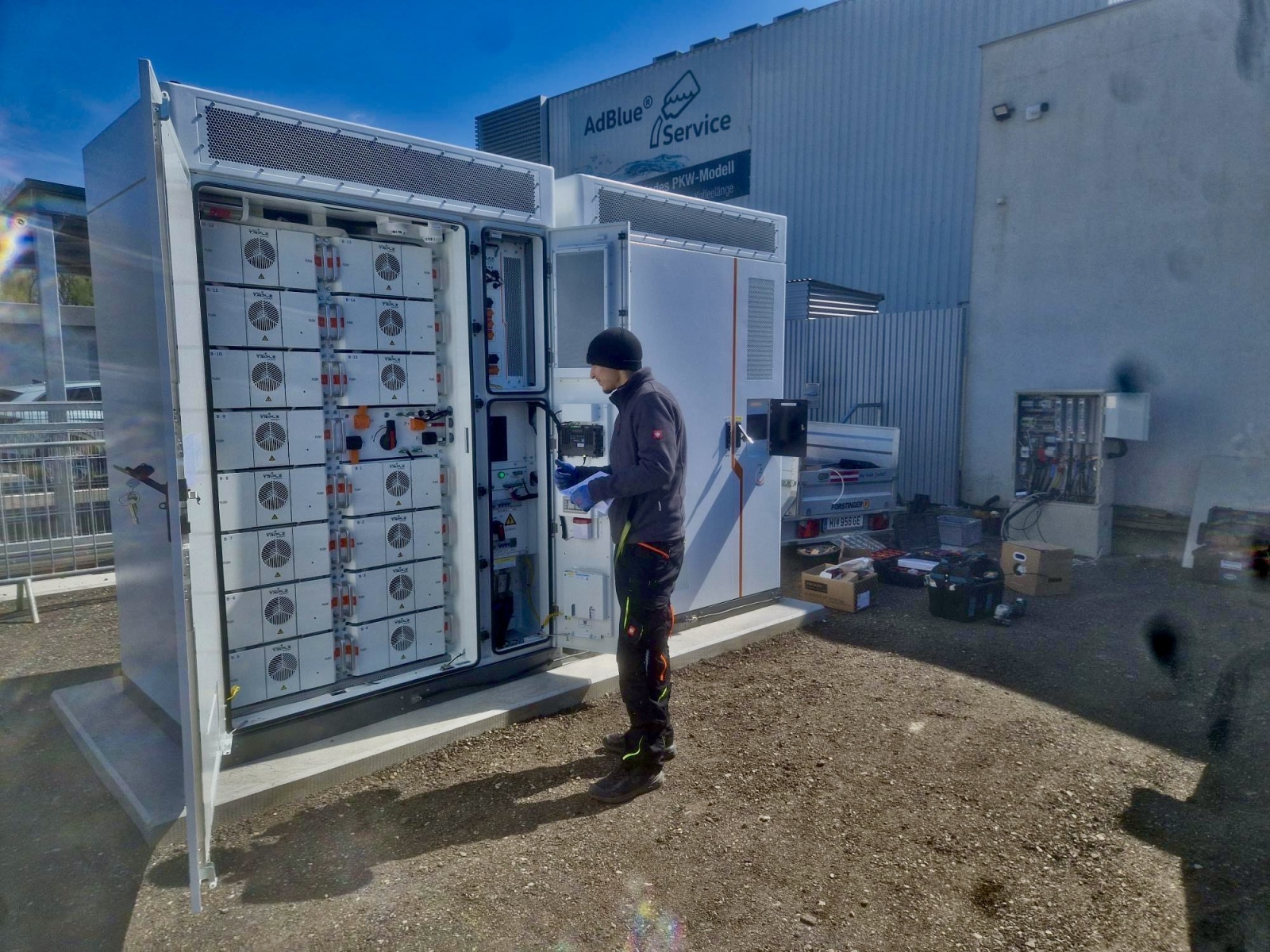 Eine Gemeinde setzt den Großspeicher ein, um bei Stromausfällen oder Notfällen wichtige Infrastruktur wie Feuerwehr, Wasser– und Kommunikationsanlagen zuverlässig mit Energie zu versorgen.